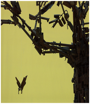 A Árvore da Vida tem uma conotação importantíssima representando igualmente a dinâmica criativa do povo Africano. A escultura pesa cerca meia tonelada e mede três metros de altura sendo construída integralmente a partir de peças de armas de guerra.