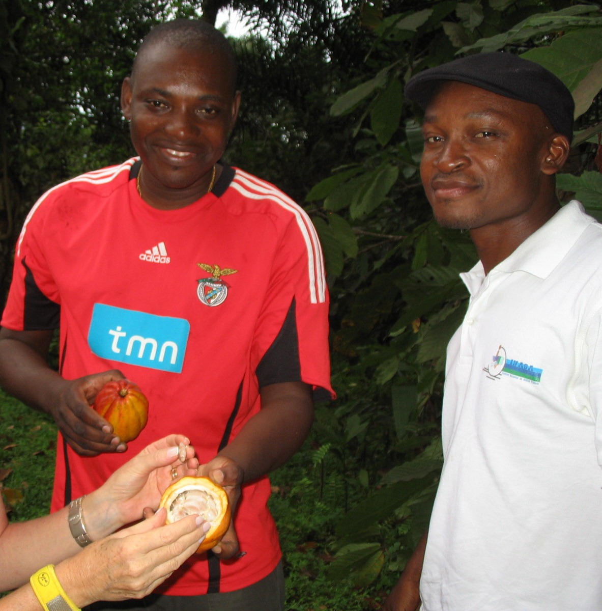 | Liotério de São Tomé e Julio Vieira da Guiné-Bissau provando o cacau do pé |
