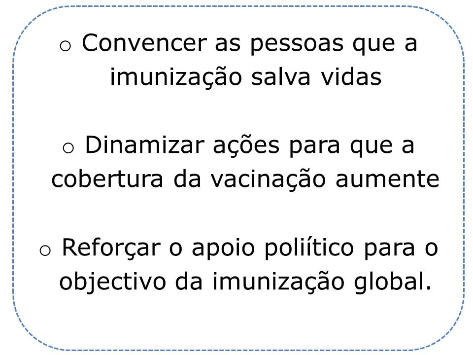 O objetivo principal é sensibilizar os profissionais de saúde e as comunidades sobre a importância da vacinação.