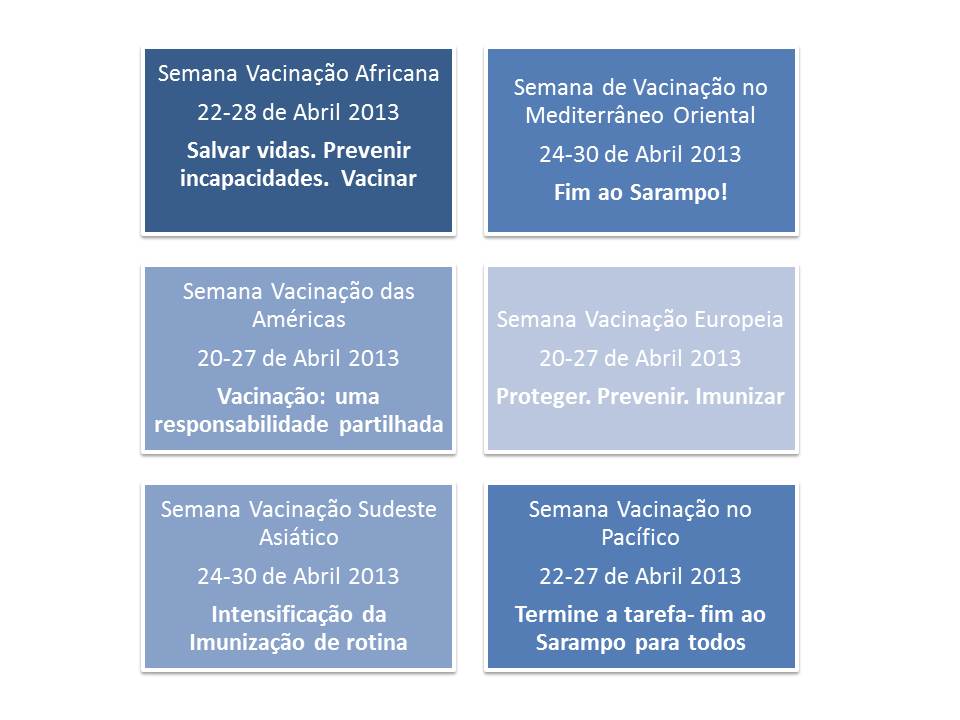A Semana Mundial da Imunização acontece anualmente na última semana do mês de abril, e em 2013 tem início no dia 20.